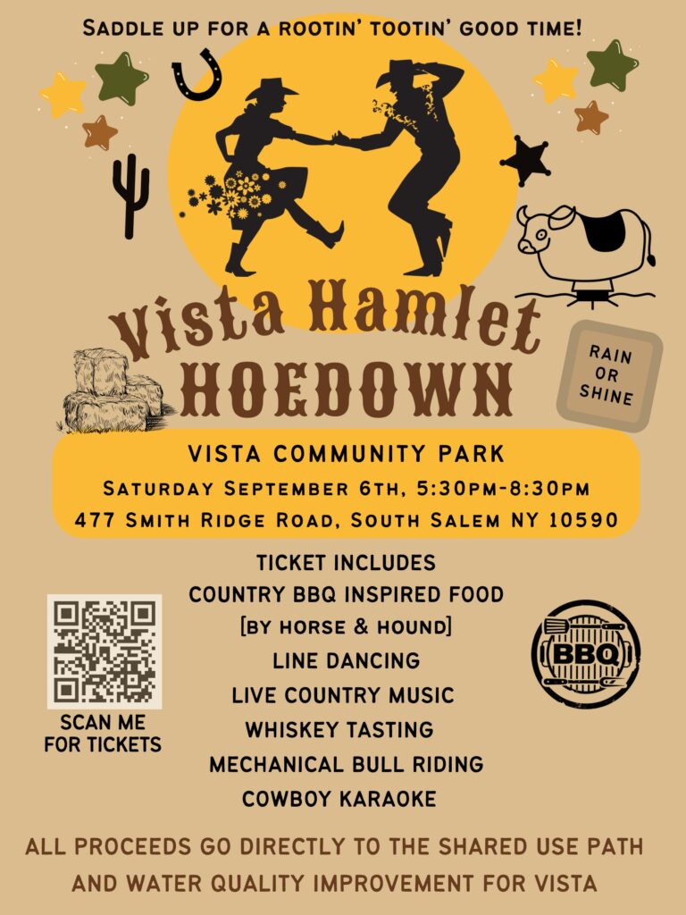 The Vista Hamlet Stewardship Council is thrilled to announce our second annual Fall community fundraiser that will be held Saturday, September 6th from 5:30pm – 8:30pm. Let’s gather for an unforgettable evening of live country music, a country caller, cowboy karaoke, mechanic bull riding, and a BBQ inspired dinner from The Horse and Hound. Special guest appearance from Vista Wine and Spirits offering a variety of whiskey tastings.